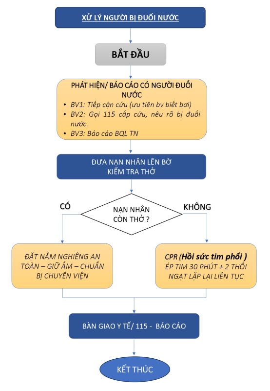- Đảm bảo an toàn cho người cứu hộ, không tự ý nhảy xuống nước nếu không biết bơi/không được huấn luyện.